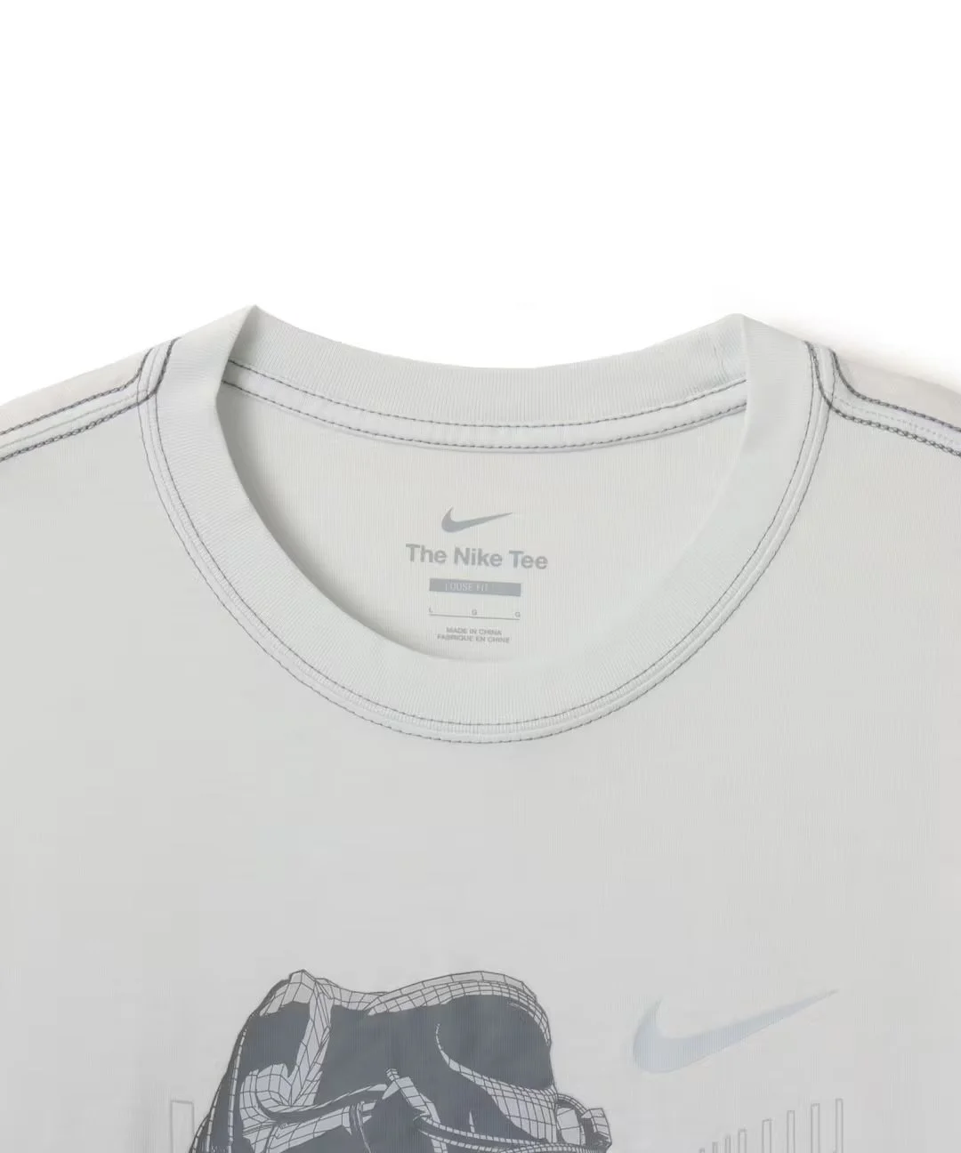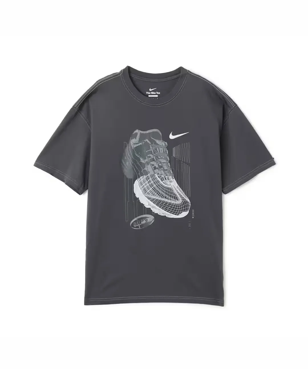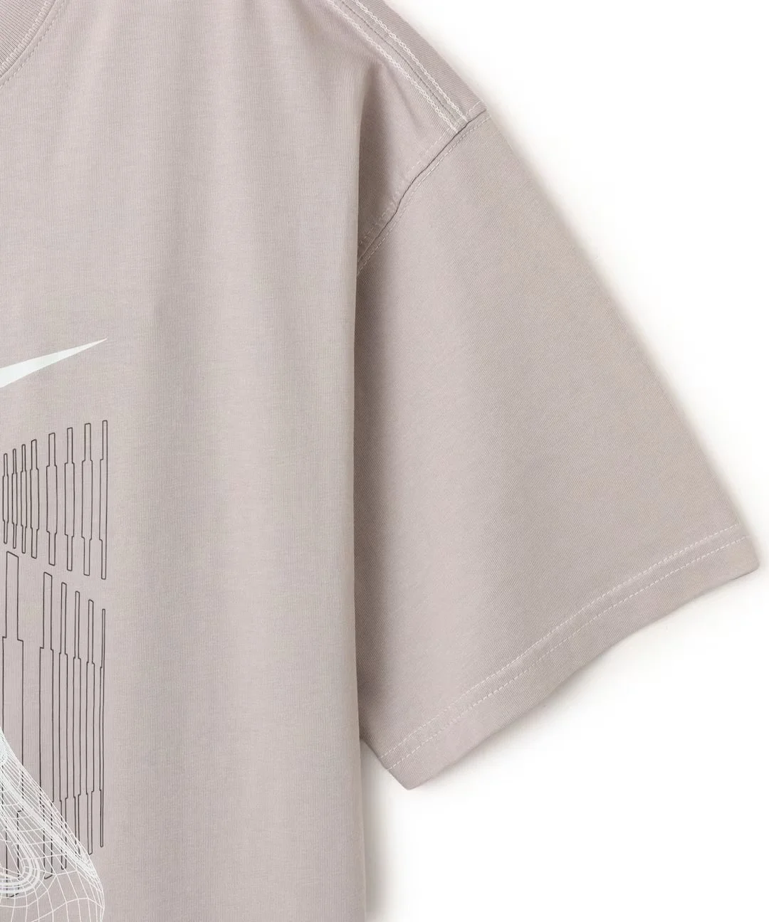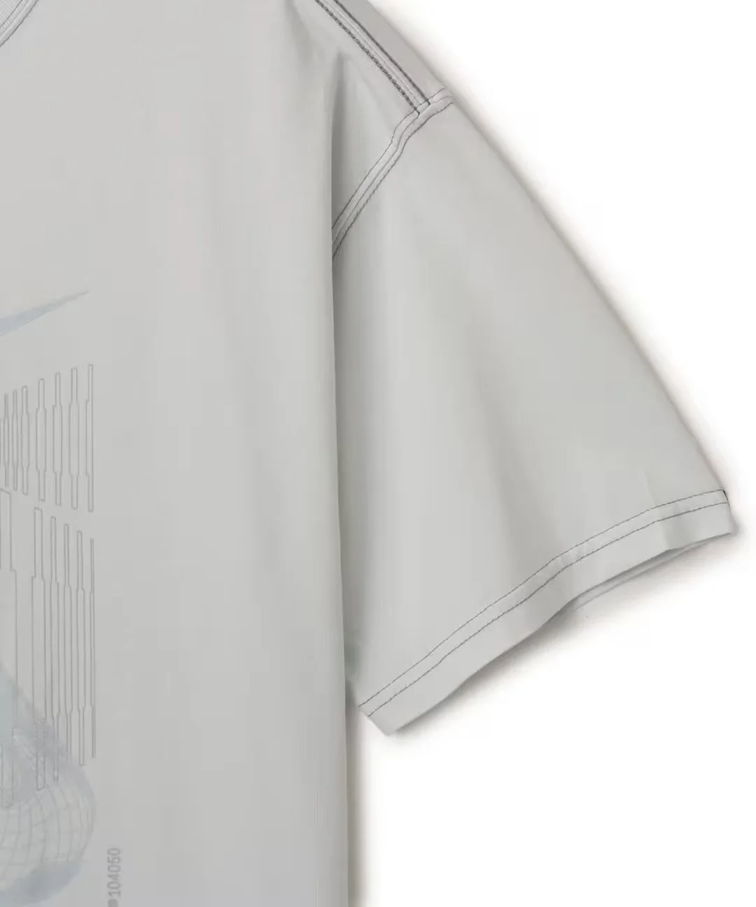 The prints feature a technical, blueprint style graphic inspired by the iconic Air Max 95 silhouette. The design breaks the shoe down into layered wireframe renderings, intersected by grid lines that give it a futuristic look. On the long sleeve shirt a spine like structure runs vertically through the center, nodding to the human anatomy inspiration behind the Air Max 95. Subtle numeric codes and geographic coordinates add a data driven, experimental feel, while a small Nike Swoosh sits cleanly to the side.