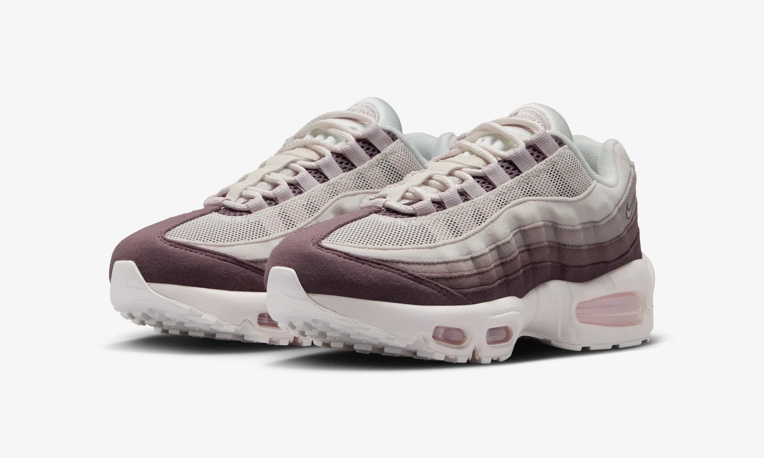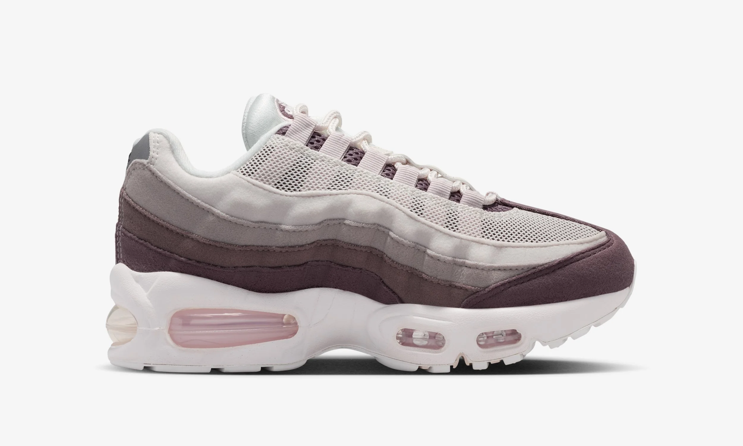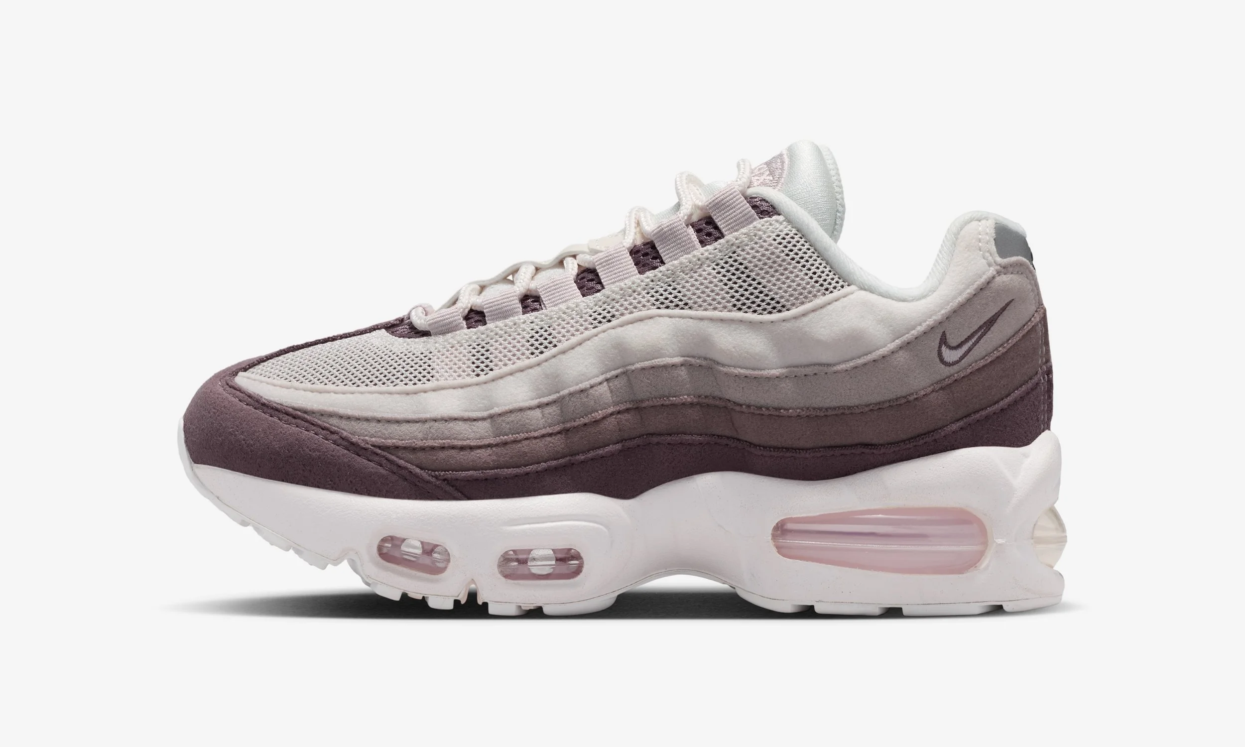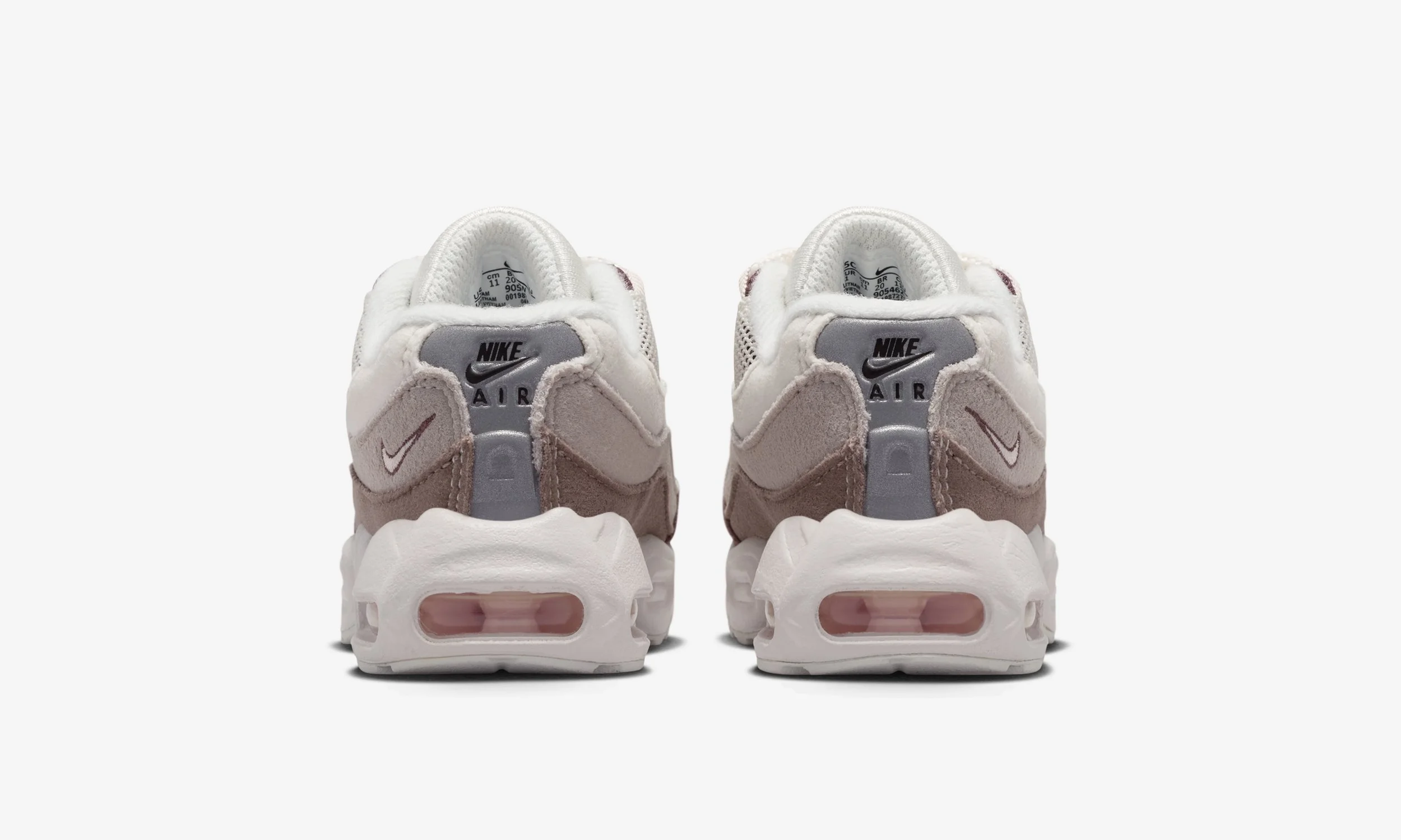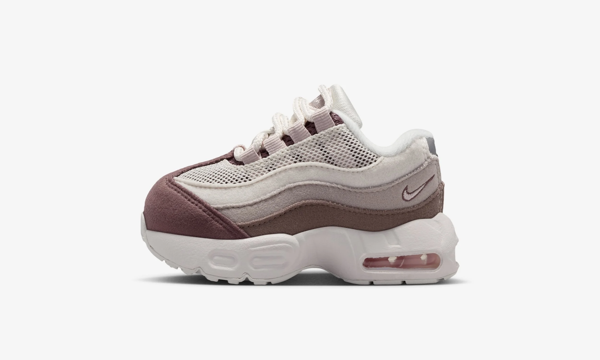 One of the standout features of this release is the all-suede upper. The layered panels synonymous with the Air Max 95 design are executed in soft tonal shades, blending Phantom and Moon Particle with deeper Silt Red accents. The result is a premium look that elevates the sneaker beyond a standard kids’ release, while still maintaining durability for daily wear.