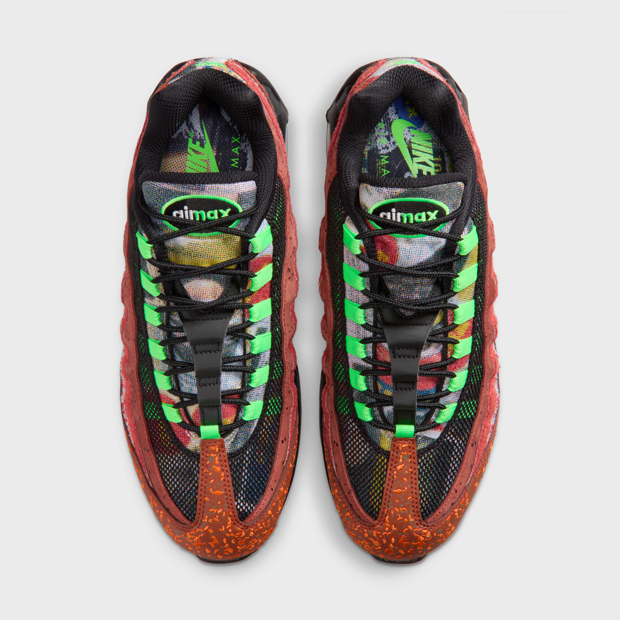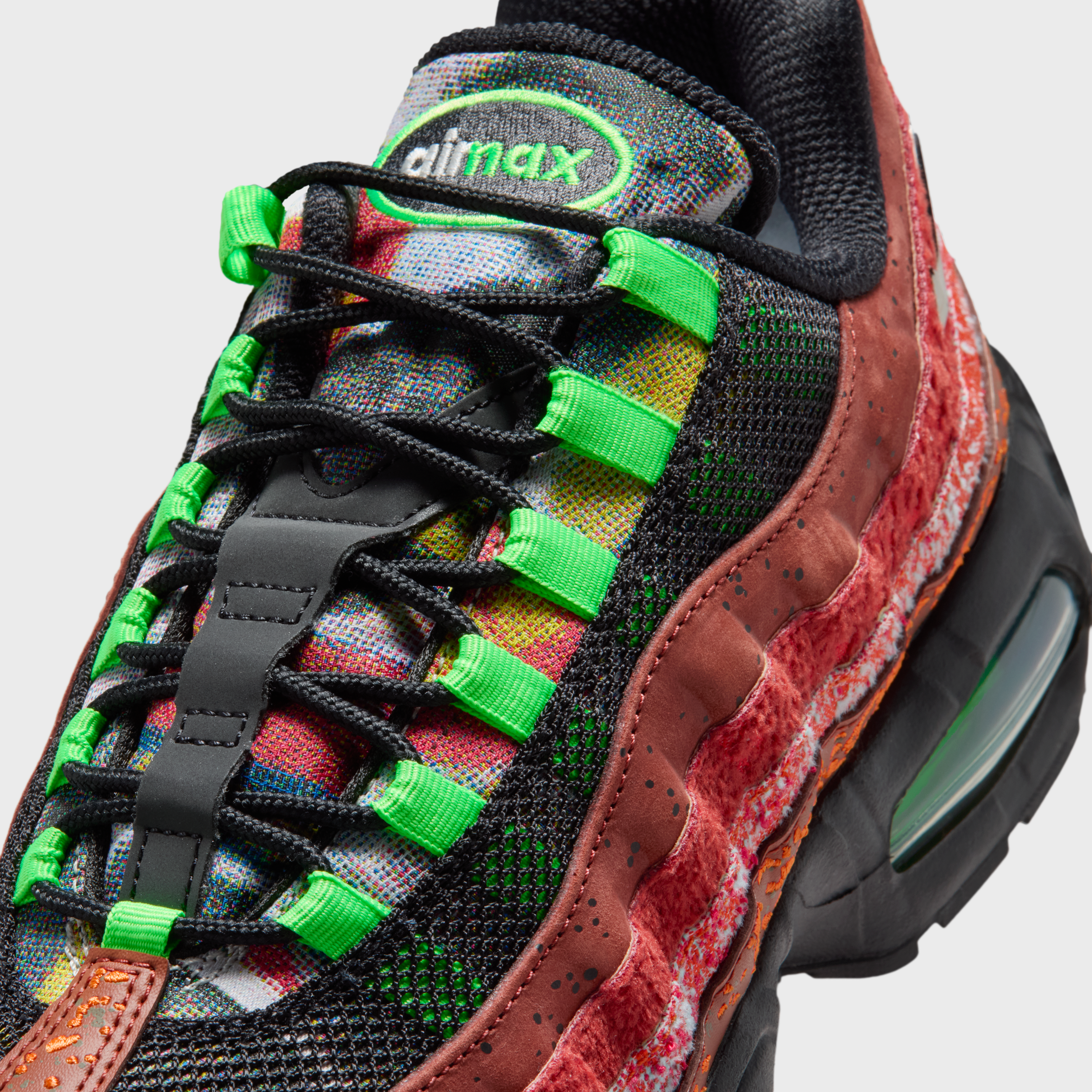 Black mesh and brown overlays ground the design, while vibrant green lace loops and Air units add electric contrast, almost like neon tubes cutting through the night. The layered paneling, a signature of the 95, feels even more dynamic here thanks to the mix of textures and speckled finishes, symbolising the city’s constant remix of cultures, ideas, and energy. It’s chaotic in the best way. Alive. Restless. Just like Hong Kong.