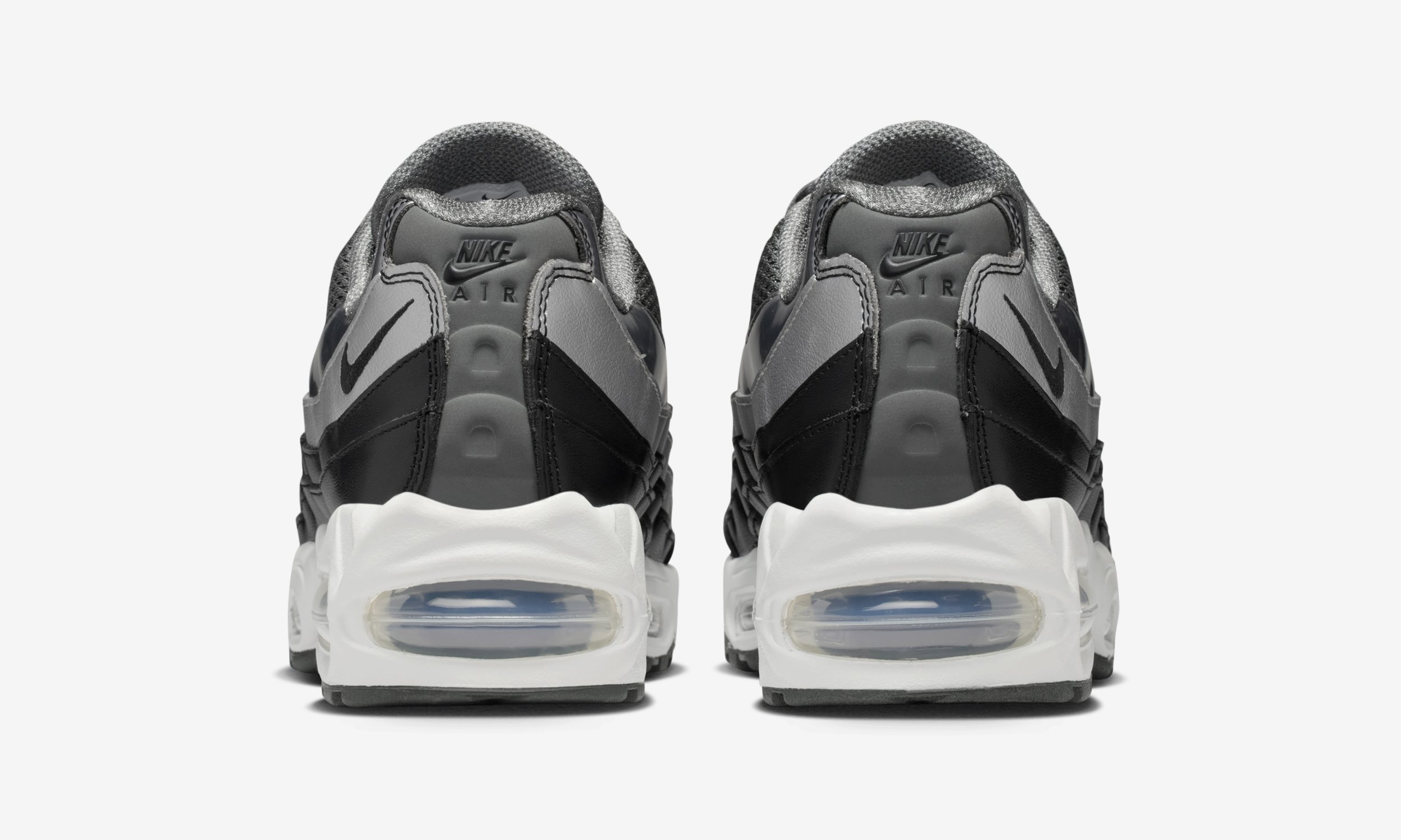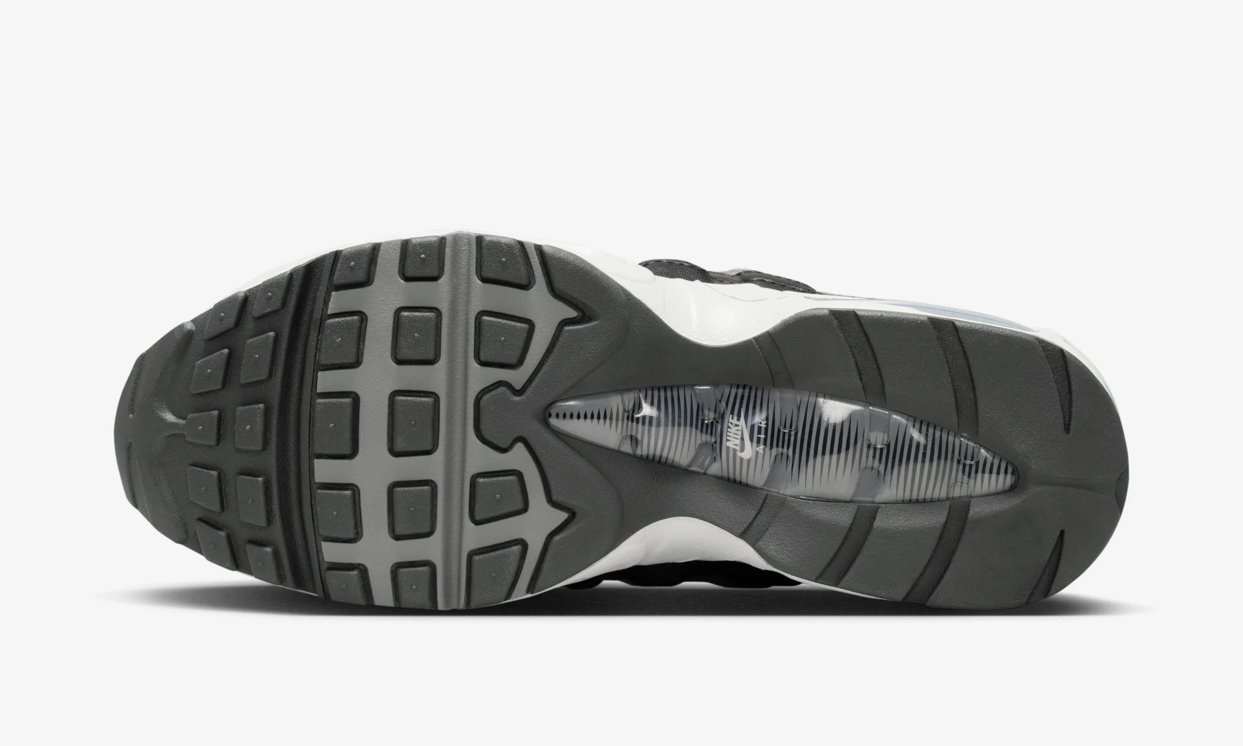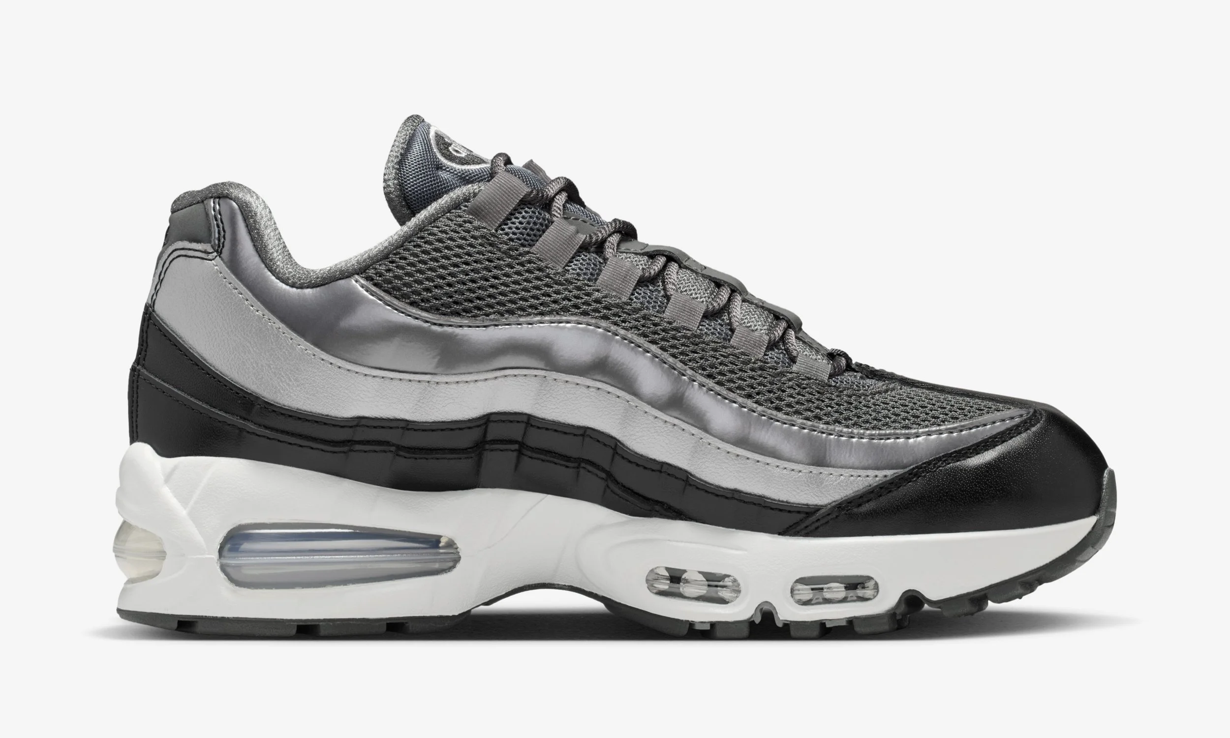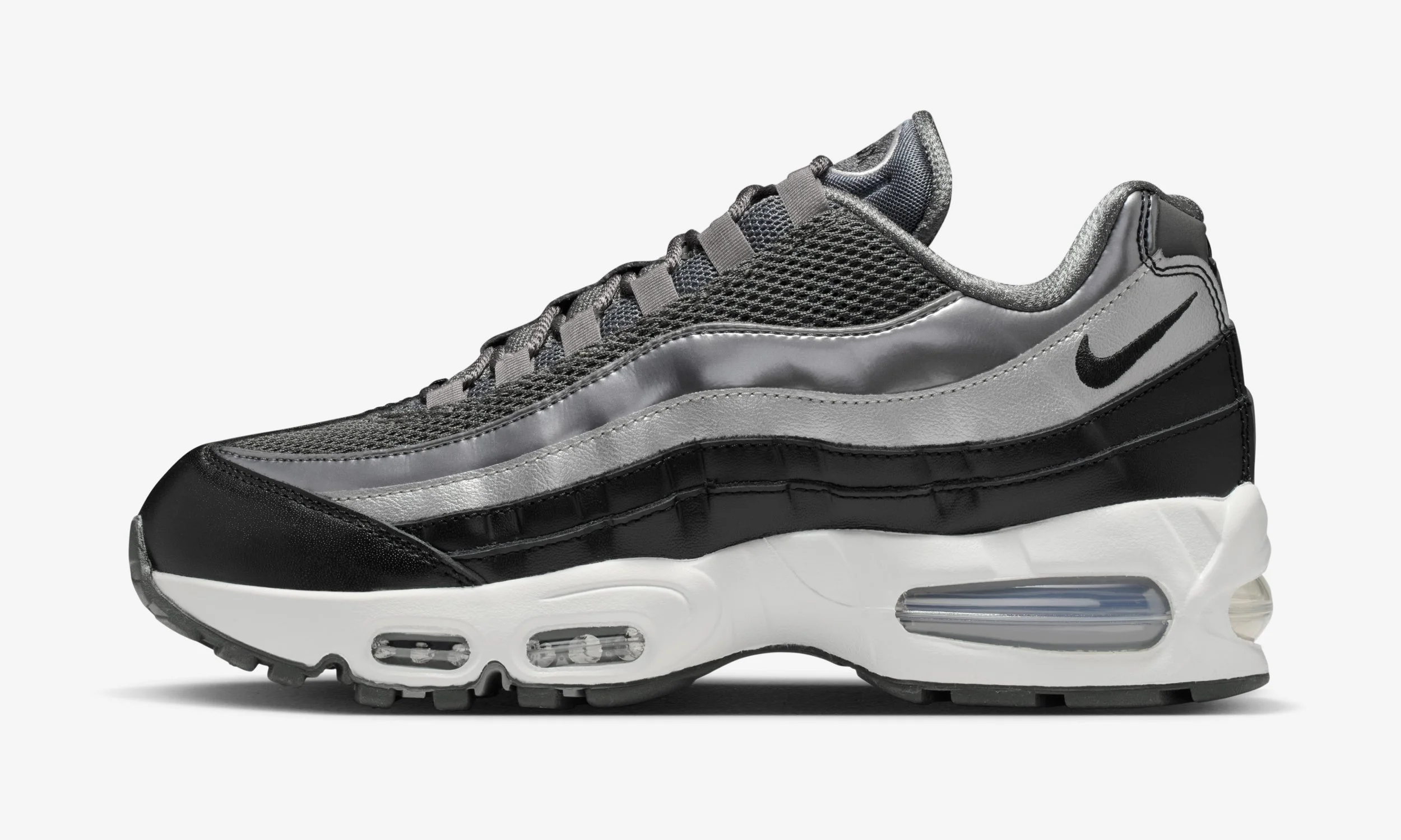The Nike Air Max 95 (IB6398-002) sticks to a clean, neutral palette built around Black, Dark Grey, White and Metallic Silver tones.