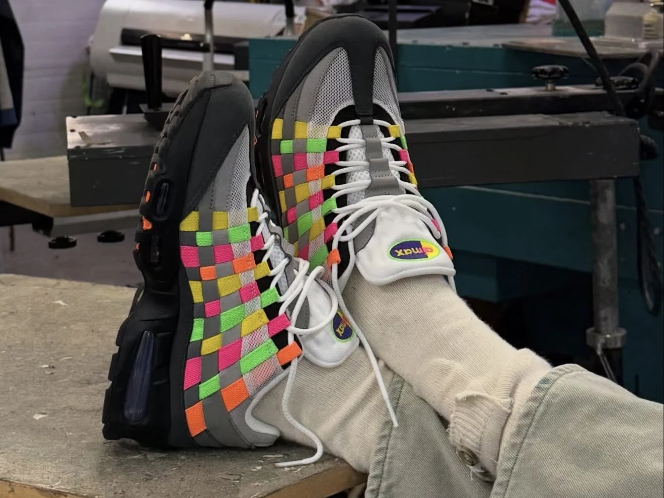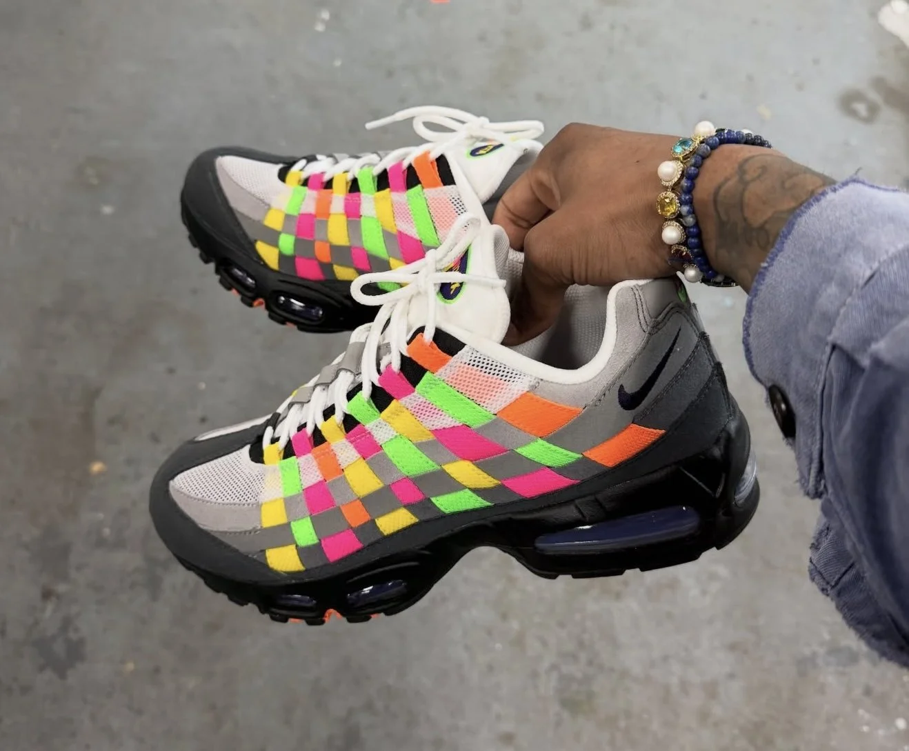 This latest iteration brings a fresh twist to the classic Air Max 95 silhouette. The traditional layered side panels are reworked into an intricate woven design, where multicoloured strips intertwine across the upper. This approach gives designers far more room to experiment, and here they’ve fully leaned into that freedom.