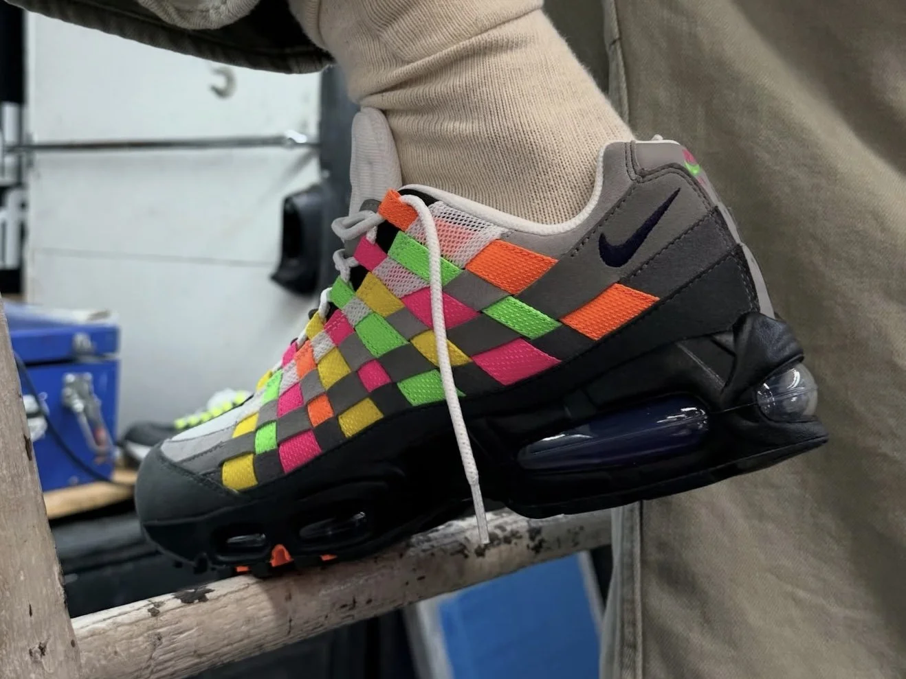 First leaked back in September last year, we’re now getting a much closer look at the upcoming Air Max 95 Woven “Multi Colour”, and it’s safe to say this pair is turning heads.